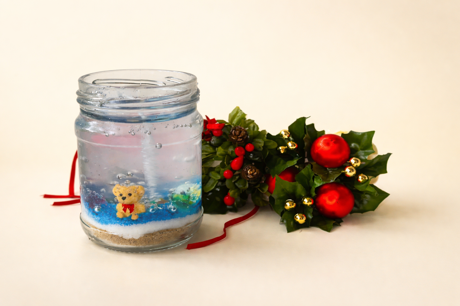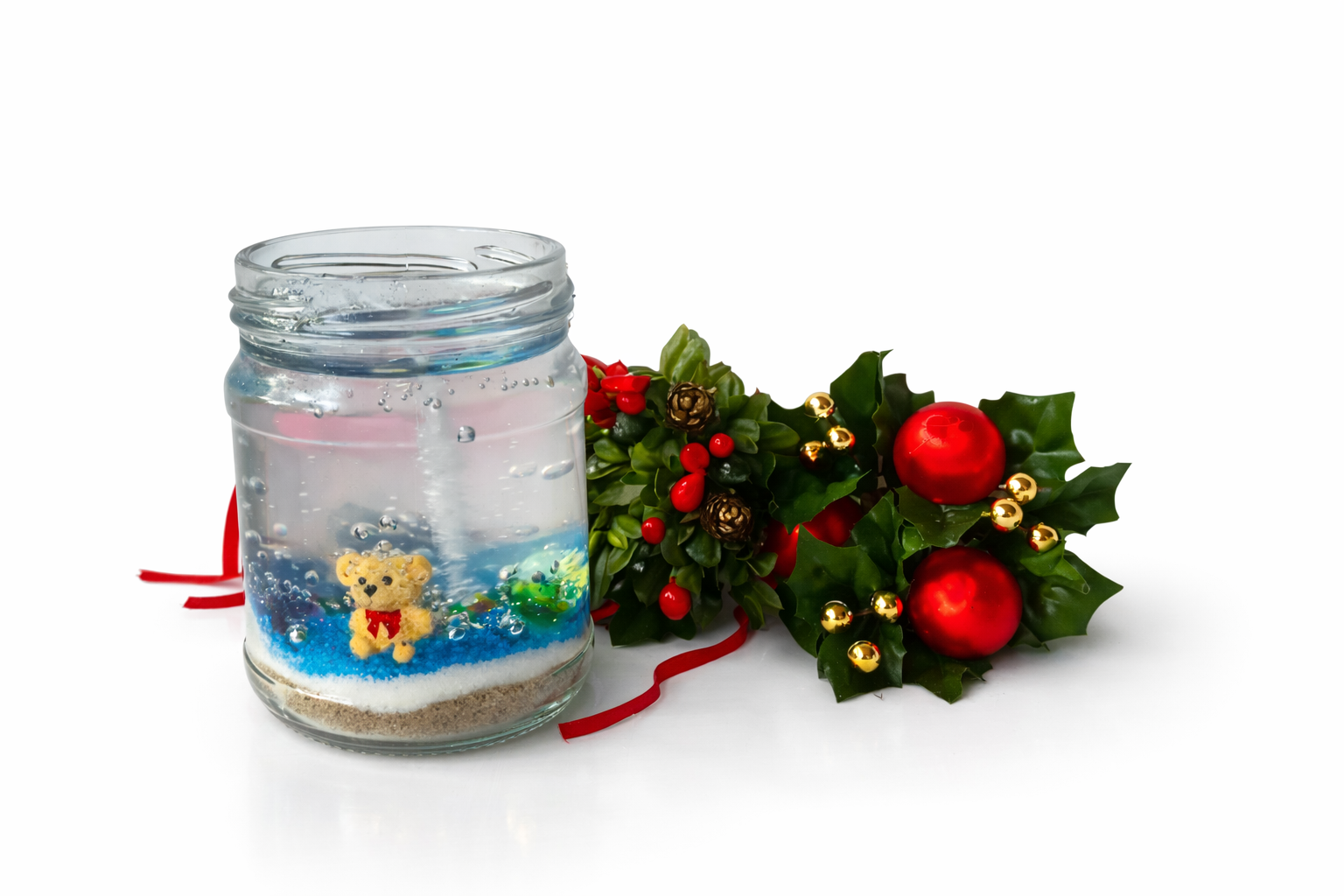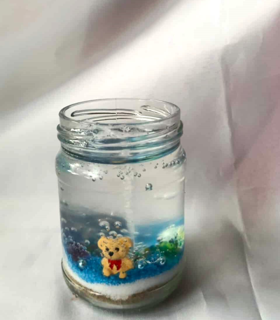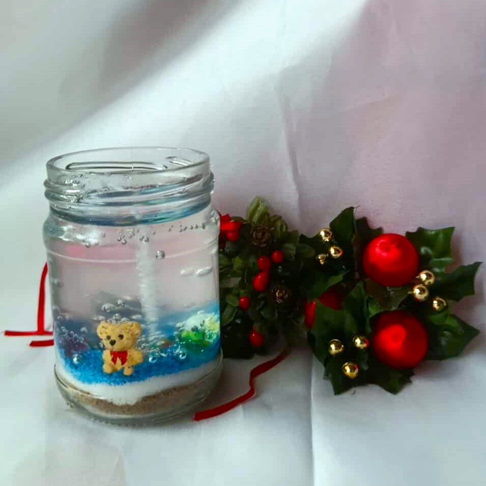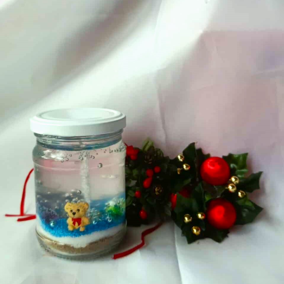 Käsitööna valminud geel küünal purgis.